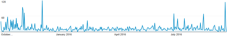 As for the records, those are unchanged, namely 169 visitors and 180 visits, set on the old site by that large spike on August 16, 2009, and 333 pageviews, set on March 3, 2013. And it sure took me a long time to remember I hadn’t added them initially due to the situation with my computer at the time I posted this but, as a much later edit, here are the graphs for visitors, visits and pageviews for this period as well.